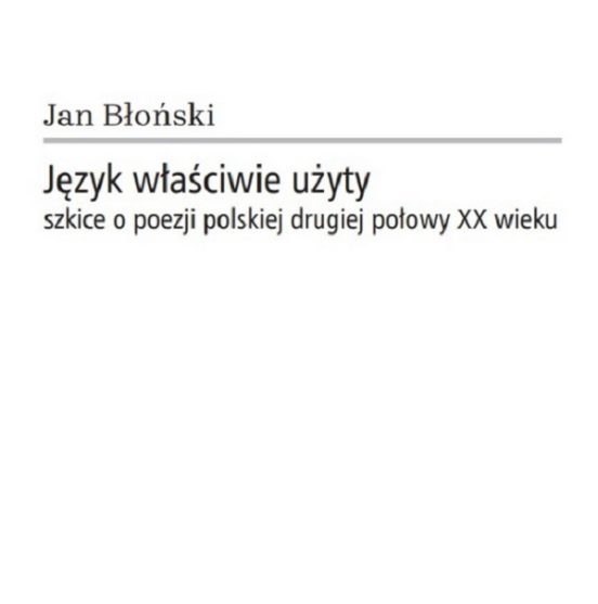 Antologia Jana Błońskiego Język właściwie użyty. Szkice o poezji polskiej drugiej połowy XX wieku „obejmuje swym zasięgiem pełny horyzont czasowy dokonań badacza. Mieści zarówno wczesne szkice o poezji Tadeusza Różewicza (opublikowane w »Twórczości« w 1949 roku), jak i późne eseje ogłaszane na łamach »Tygodnika Powszechnego« na początku trzeciego tysiąclecia. Nie jest jednak systematycznym kursem historii literatury – staje się raczej wykładem prywatnym, tworzonym ze względu na osobiste fascynacje. Nie dlatego, by Błoński takiej syntezy stworzyć nie mógł, ale dlatego, że nie chciał. Zawsze podkreślał, że jego sposób obcowania z literaturą ma charakter afektywny. Bronił prawa krytyka do »zakochiwania się«, do przywiązywania się do ulubionych autorów(…). Co zdaniem Błońskiego decyduje o wadze, a więc i powadze twórczości poety? Czy ranga podejmowanych przez niego problemów? Horyzont (metafizyczny?) jego wyobraźni? Oto pytania, które będą nam towarzyszyć w trakcie lektury tego tomu” – pisze we wstępie Wojciech Kudyba.