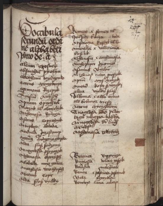 Prezentowany na wystawie JAM POSEŁKINI JEGO rękopis o sygnaturze BOZ 69 opatrzony tytułem Conservatio sanitatis („zachowanie zdrowia”) skrywa w sobie opowieść o początkach popularnonaukowej polszczyzny. Pomiędzy łacińskojęzycznymi traktatami medycznymi, autorstwa chociażby Galena czy Macieja z Miechowa, zamieszczono polsko-łaciński słowniczek z nazwami roślin potrzebny do sprawnej komunikacji między lokalnymi dostawcami ziół leczniczych (najczęściej nieznającymi łaciny) a zakonnikami, którzy potrzebowali odpowiednich surowców do przyrządzenia medykamentów. Podobny spis zamieszczono w rękopisie o sygnaturze BOZ 66, pochodzącym (tak jak BOZ 69) z klasztoru kanoników regularnych w Czerwińsku. Było to zgromadzenie, które koncentrowało się na pomocy osobom chorym, na przykład poprzez budowanie zakładów opieki.