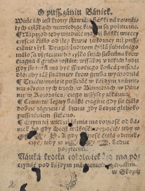 Dobrze jest […] krew puszczać żyłami i bańkami okrom głownej żyły. Źle jest […] krew z nosa puszczać.